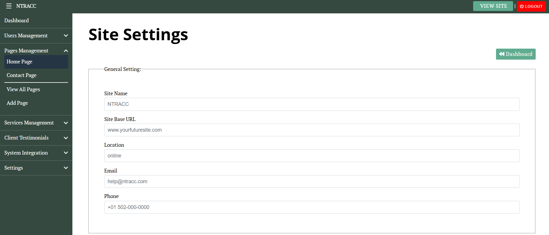 Glance of Admin Dashboard